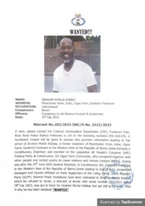 Sierra Leone Police Declares APC Constituency Chairman Wanted.